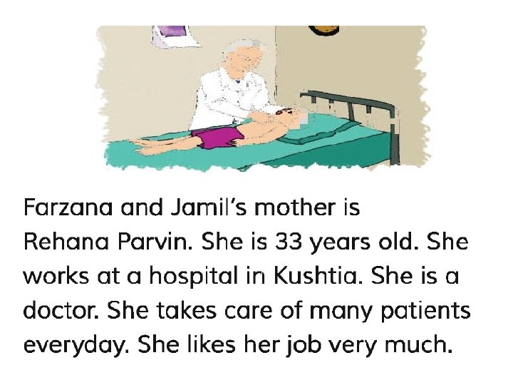 Pair Work: Answer the following questions in pair : Where does Farzana and Jamil from? Ans: They live in Kustia. How old is Farzana? Ans: She is 9 years old. What do their mother do? Ans: She is a Doctor.