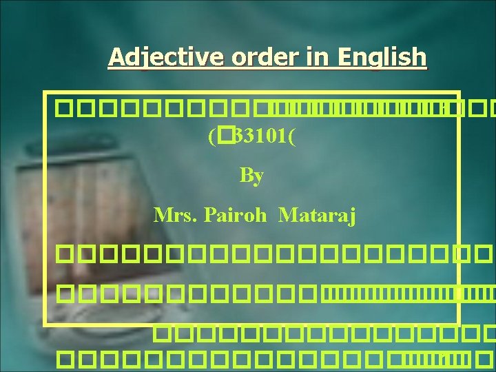 Welcome to Adjective order in English, the third period. ����� 3 �����