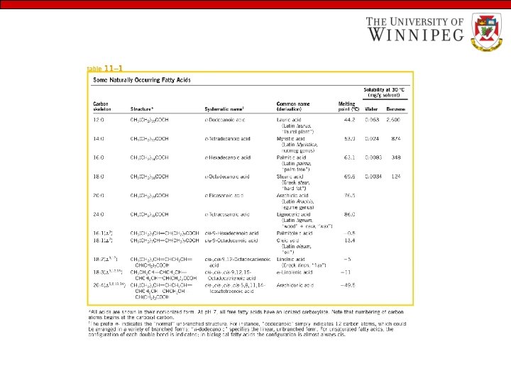 • Fats and oils: Storage lipids – are universally used as stored form of energy by living organism. One gram of fat gives 9 K Calories – are highly reduced compound, derivatives of fatty acids – fatty acids are hydrocarbon derivatives, which are long chain carboxylic acids containing up to 24 carbon atoms – the most common fatty acids in plants and animals are the even-numbered C 16 and C 18 species such as palmitate and stearate – fatty acid are classified as saturated (where all the carbon are saturated with hydrogen) or unsaturated ( which contain one or more double bonds)