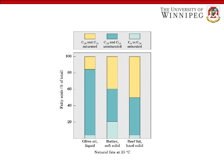 Types of Triglycerides • Simple triglycerides: They are triesters made from glycerol and three molecules of one kind of fatty acids. They are rare. • Mixed triglycerides: They are triesters with different fatty acid components. Animal fats and vegetable oils are many different mixed triglycerides; e. g. , Butterfat contains at least 14 different carboxylic acids.