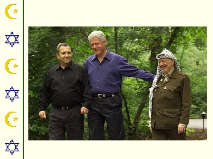 • Yasser Arafat, Prime Minister Ehub Barak and President Bill Clinton • Barak proposed to give Palestinians control 95% of the West Bank • Arafat rejected this proposal • Agreed to “principles for future negotiations”