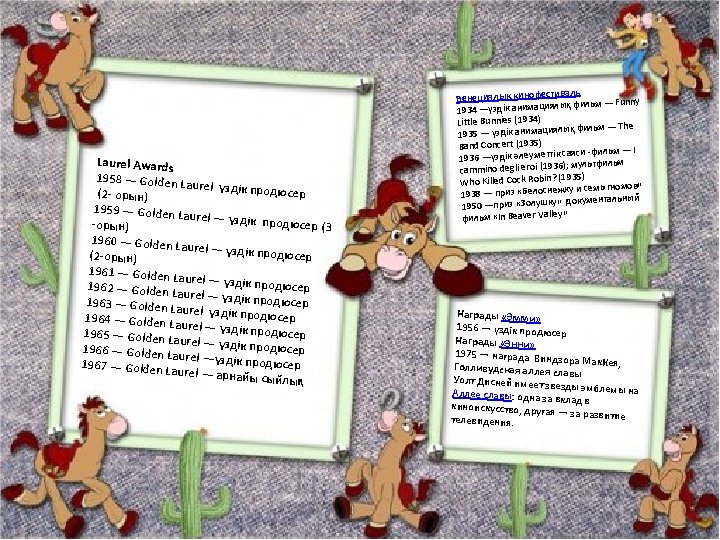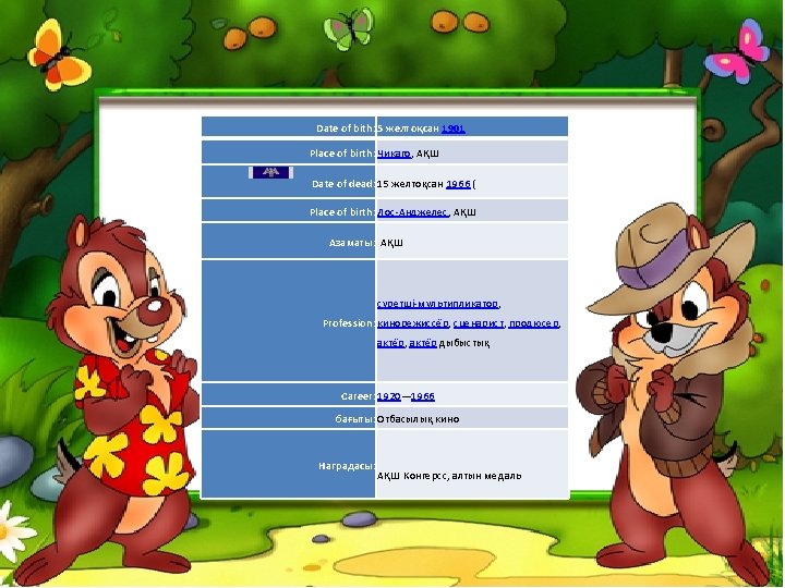 Наградалар Канн кинофестивал 1946 —үздіканимациялық фильм — Make Mine Music (1946) 1953 — фестивал David di Donatello 1956 — Directors Guild of America 1955 — Honorary Life Member Award 1969 —Джунглий кітабы(1967)