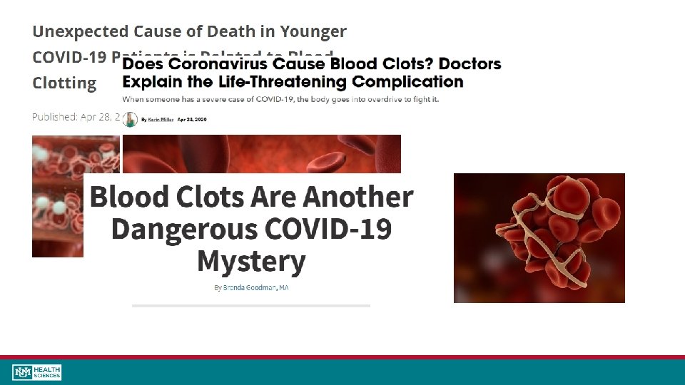 * Stroke and arterial thrombi also have increased incidence. Fox SE, Akmatbekov A, Harbert JL, Li G, Brown JQ, Heide RSV. Pulmonary and cardiac pathology in African American patients with COVID-19: an autopsy series from New Orleans. Lancet Respir Medicine. Published online 2020. doi: 10. 1016/s 2213 -2600(20)30243 -5