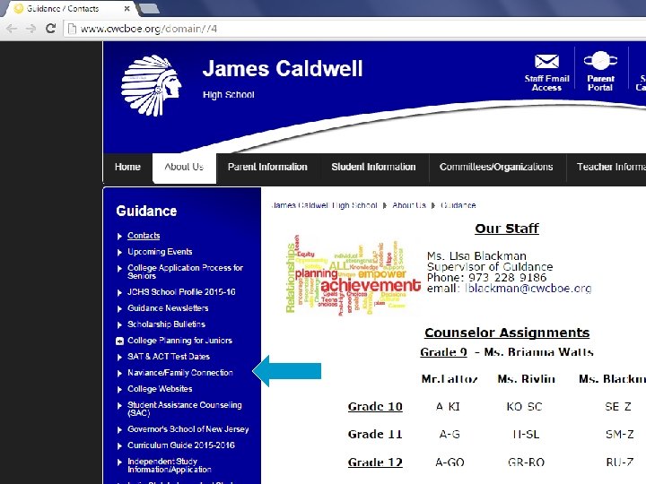 JCHS Guidance Dept. n Lisa Blackman, Supervisor of Guidance n Frank Lattoz, Guidance Counselor n Lacey Rivlin, Guidance Counselor n Brianna Watts, Freshmen Guidance Counselor