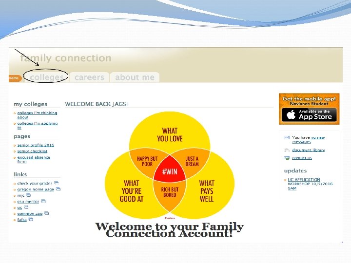 HELP! • How do I accomplish all this? Naviance! Visit Colleges Go on to college websites; virtual tours Students can attend college rep. visits on campus Be organized! Create master list of application deadlines, letters of recommendation needed, financial aid and scholarship deadlines, etc. • Start working on applications and personal statements/essays over the summer • • •