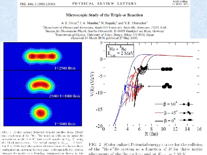 α-8 Be impact parameter 0. 2 fm E (center of mass) = 2 Me. V A. S. Umar, J. A. Maruhn, N. Itagaki, and V. E. Oberacker Phys. Rev. Lett. 104, 212503 (2010).
