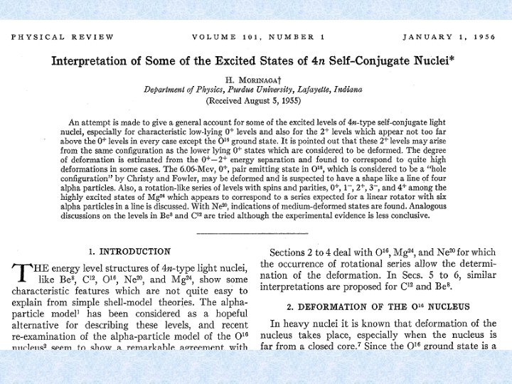 20 C alpha chain states , Ex ~ 15 Me. V region Skyrme Hartree-Fock calculation Sk. I 3 Sly 6 Sk. I 4 Sk. M* J. A. Maruhn, N. Loebl, N. Itagaki, and M. Kimura, Nucl. Phys. A 833 (2010).