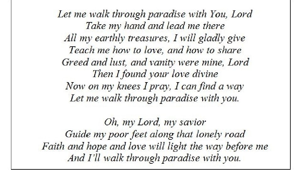 OFFERTORY INVITATION God looks upon your face. God assures you when nothing else can. “My presence will go with you”, God says. “I will give you rest”, God prays. Let us carry this spirit into our giving. Let us praise God with our gifts of tithes and offerings.