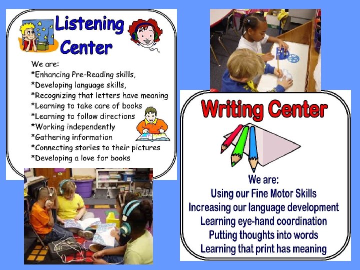 Our Schedule • Seat Work: This allows students to settle in and focus on concepts learned the previous day. Attendance is taken. • Carpet Time: Weather, Calendar, Counting Caterpillar, Alphabet Chart, Rote Counting • Shared Reading/Writers Workshop • Literacy Work Stations (including guided reading) • Snack • Math • Social Studies/Science (sometimes included in stations) • Special (Music, Gym, Library) • Recess/Pretend Playtime (not on all days)
