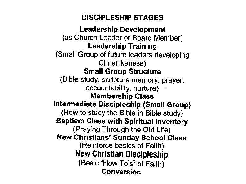 II. DISCIPLESHIP (14 -20) The process by which a Christian with a life worth emulating/modeling after commits himself/herself for an extended period of time to a few individuals who have been won to Christ, the purpose being to aid and guide their growth to maturity and equip them to reproduce themselves in a third spiritual generation.