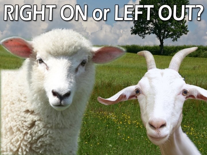 Matthew 25: 33 -40 33 And he shall set the sheep on his right hand, but the goats on the left. 34 Then shall the King say unto them on his right hand, Come, ye blessed of my Father, inherit the kingdom prepared for you from the foundation of the world: