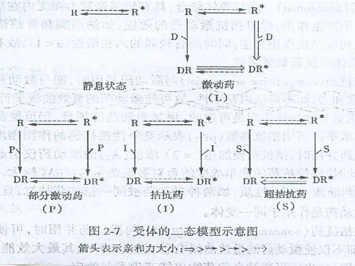 2. Drug and Receptors (1) Development of Receptor theory a. Langley(1878): Intercounter of atropine with pilocarpine in salivary excretion.