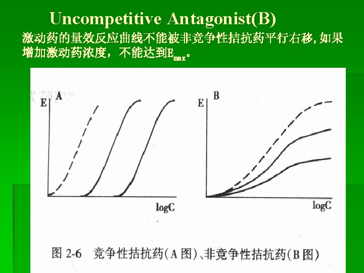 B. Noncompetitive antagonist 非竞争性拮抗药 Spare receptors ( by Stephenson 1956) 储备受体