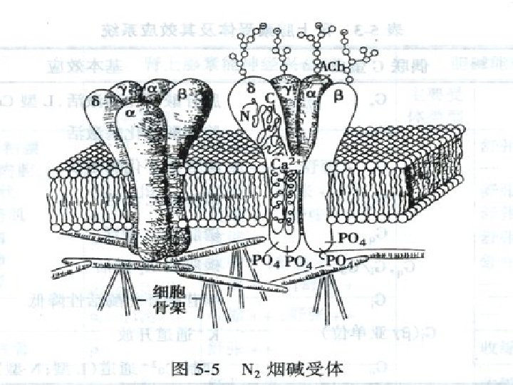 Types of Receptors (2) Ligand-gated ion channel receptors (配体门控离子通道受体, receptors containing ion channel) N, GABA receptors Ach + N 2 receptor → Na+ channel open → depolarization → skeletal muscle contraction.