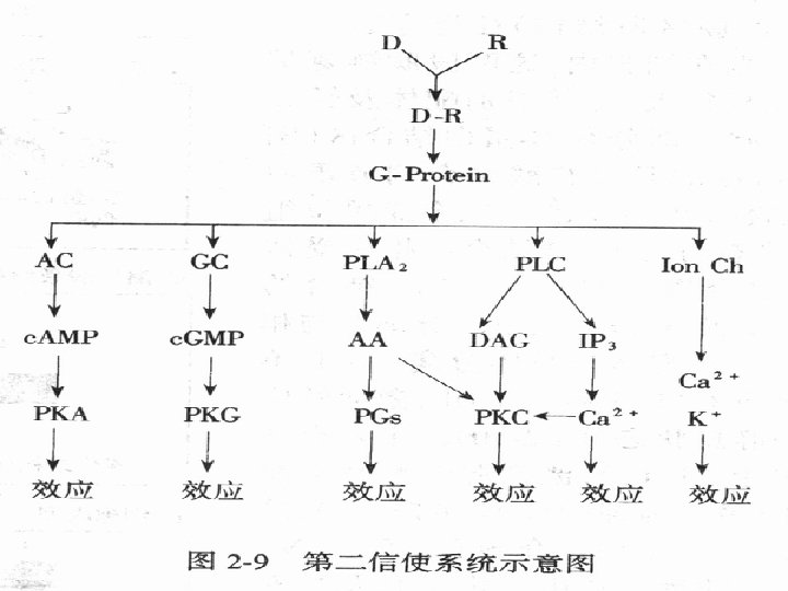 Intracellular Signal Transduction and the Second Messengers (3)Phosphatidyl inositol: IP 3, DAG α 1, H 1, 5 -HT 1, M 3. (4)Calcium ion Ca 2+ intracellular less than 1μmole/L.
