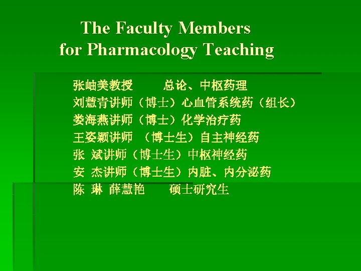 PHARMACOLOGY 药 理 学 张岫美 Zhang Xiu-mei 山东大学医学院 药理学研究所 教学八楼 8325 Tel: 83146 Email: zhangxm@sdu. edu. cn