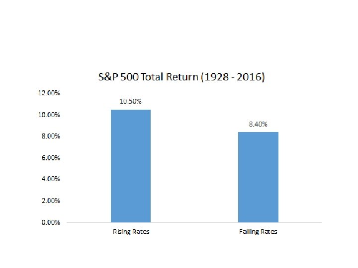 2013 • But what about those "rising rates? " • As it turns out, there is zero correlation between the S&P 500 and 10 -Year Treasury yields, meaning one cannot say anything about equity market performance based on the direction of interest rates. • Since 1928, stocks have actually fared better in years where interest rates were rising than falling.