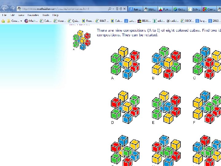 http: //www. mathsisfun. com/puzzles/number-puzzles-index. html http: //www. mathsisfun. com/puzzles/algebra-puzzles-index. html ABC × DEF = 123456, if A = 1 http: //www. mathsisfun. com/puzzles/shape-puzzles-index. html http: //www. qbyte. org/puzzles/puzzle 02. html