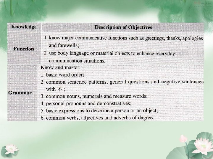 CHINESE LANGUAGE STAGE 1 Objectives Linguistic knowleage Linguistic skills