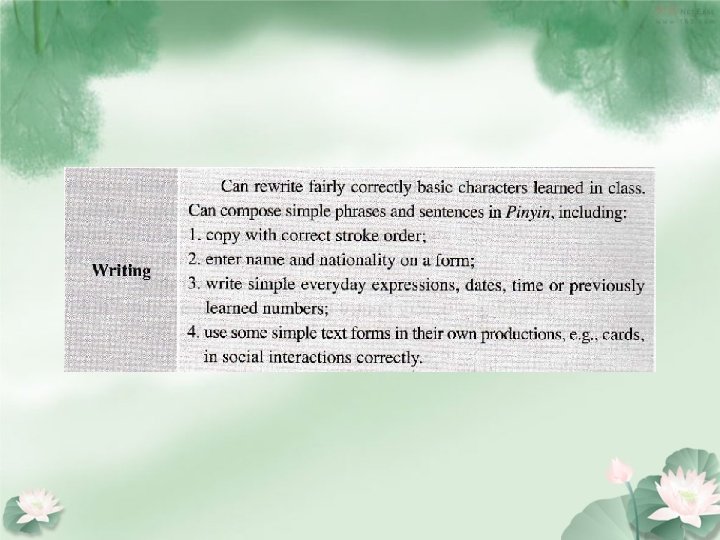 1. 1 OBJECTIVES • Can read simole Chinese with Pinyin and understand the meaning of it. • Can communicate in simply Chinese. • Can write simple Chinese characters.