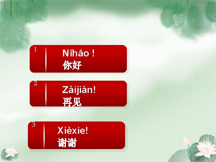 WELCOME TO THE CHINESE LANUGUAGE CLASS ! Huān yín lái dào 欢 迎 来 到 Zhōngwén kètáng! 中文 课堂 !