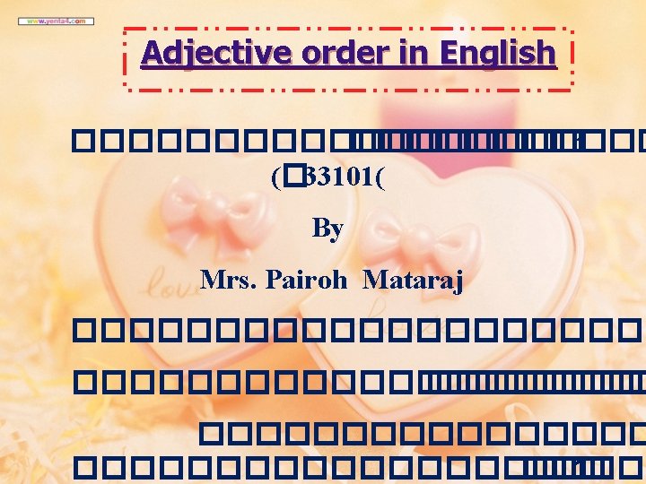 ����� Adjective ������� 1 ������� . 1 Opinion or judgment ���������� beautiful, ugly, easy, fast, interesting, difficult, lovely ( an ugly dog) I think it is an easy lesson.