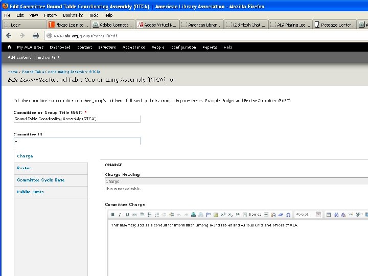 Watch for instruction under. Step fields 6: Optional Committee fields For Committee fields like “Composition”, watch for the instruction and sample copy to give you guidance as to what is needed for these fields. It is located AFTER the field. Some committees were born out of other taskforces or initiatives so the Origin and Optional Category fields are available for historical and other committee relate information that can be added to the page.