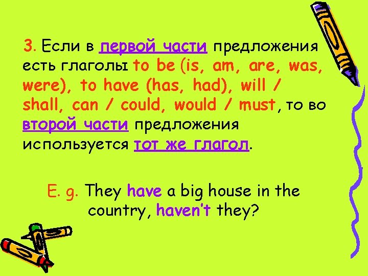 Match the questions and the answers. 1. You are in the fifth form, aren’t you? 2. He isn’t from Scotland, is he? 3. They must work hard, mustn’t they? 4. We won’t go abroad this summer, will we? a) b) c) d) No, he isn’t. Yes, they must. No, we won’t. Yes, I am.