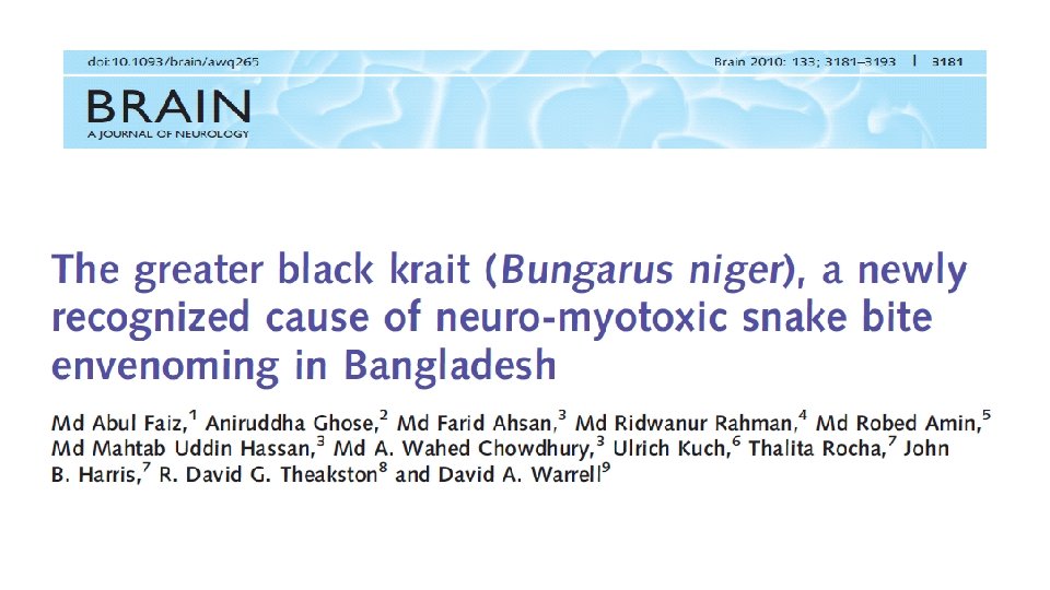 Acknowledgements • SNAKEBITE STUDY GROUP OF • PRO. M. A. FAIZ. CHITTAGONG, DHAKA, RANGPUR • PROF DAVID WARELL MYMENSINHG. RAJSHAHI, SYLET • PRO. DR. RIDWANUR • ALL MY COLLEGUES AND DOCTORS OF WARD 16 , CMCH RHAMAN • ALL PUBLICATIONS - BOTH • WHO GUIDELINE NATIONAL AND • NATIONAL GUIDELINE INTERNATIONAL