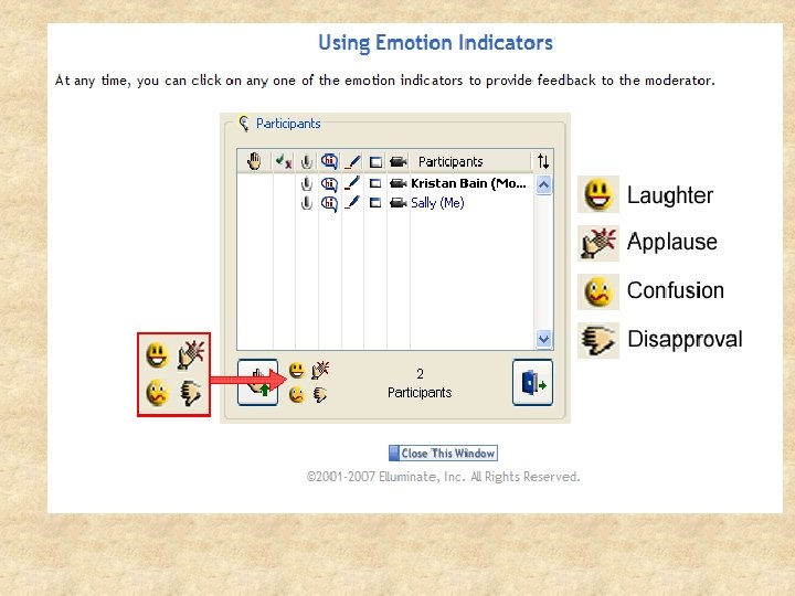 Emoticons Respond to poll Chat Adjust volume