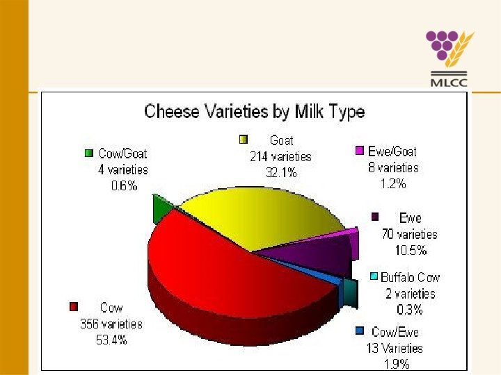 Canadian Cheese l 477 varieties are produced in Quebec l 125 varieties are produced in Ontario l 65 varieties are produced in other Canadian provinces