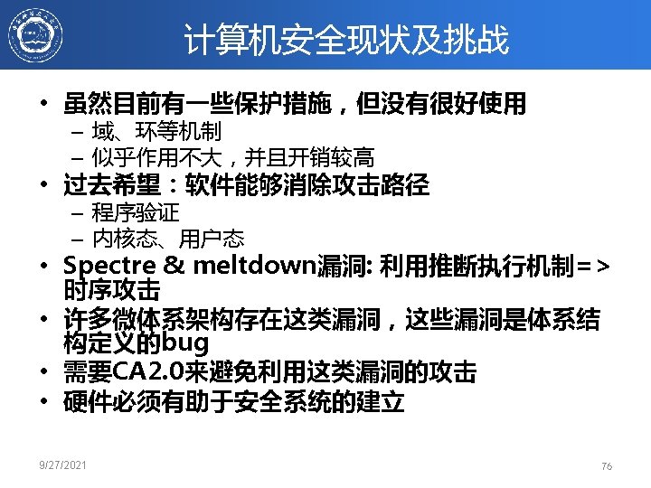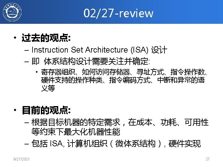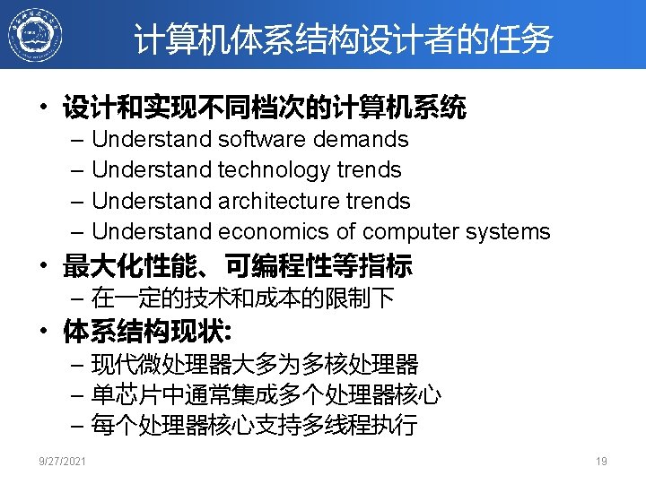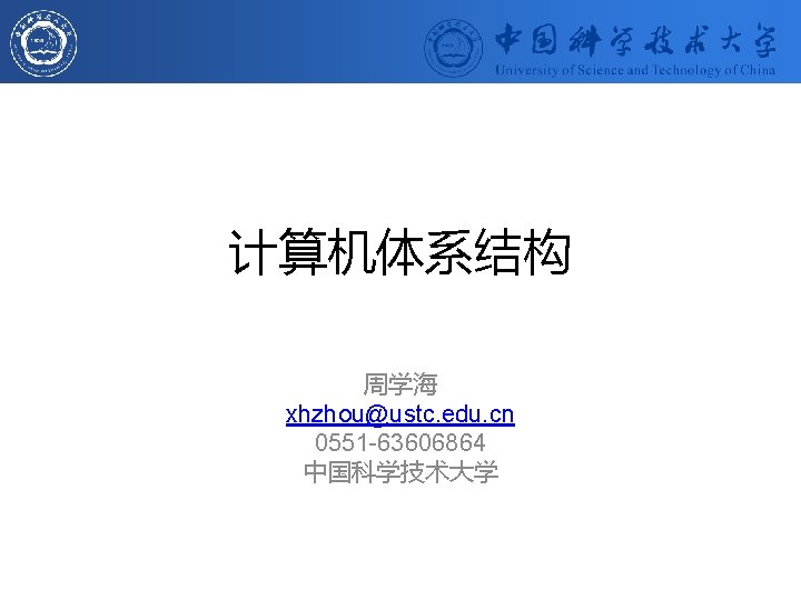 Welcome to …… • • 主讲:周学海(xhzhou@ustc. edu. cn) 办公地点: 嵌入式系统实验室 (西活北一层) 办公电话: 0551 -63606864 0551 -63492149 课程主页: http: //staff. ustc. edu. cn/~xhzhou/CASpring 2019/CA. html • …. 9/27/2021 2