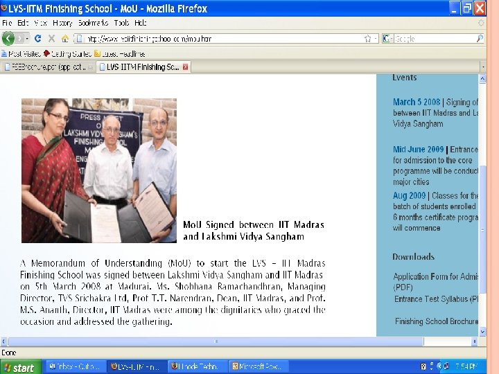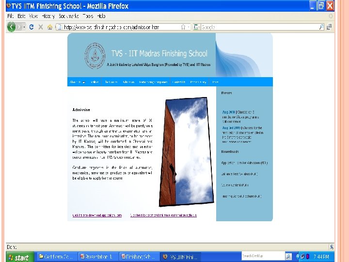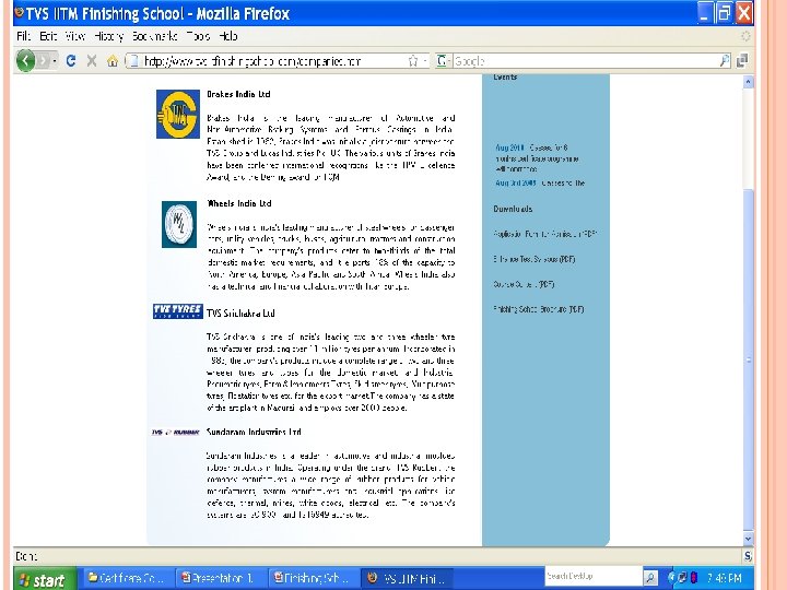 TVS IIT MADRAS FINISHING SCHOOL Set up to address the gap between the knowledge of a Fresh Graduate Engineer and the requirements of the Industry Aim is to bring the expertise and experience of the best proponents of Engineering Design in the country to the deserving section of students who demonstrate exceptional potential and leadership qualities