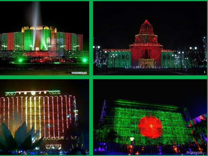 In the evening, all major public buildings are illuminated with colourful lights. Bangla Academy, Bangladesh Shilpakala Academy and other socio-cultural organisations hold cultural functions. Similar functions are also arranged in other places in the country.
