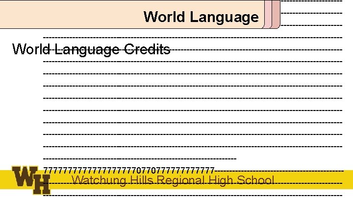 World Language Students will be able to… ● ● ● engage in meaningful conversation understand/interpret spoken/written language present information, concepts and ideas gain perspectives of other cultures make connections with other content areas in a world language. Watchung Hills Regional High School