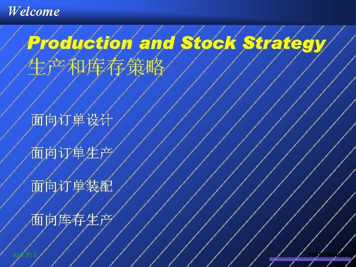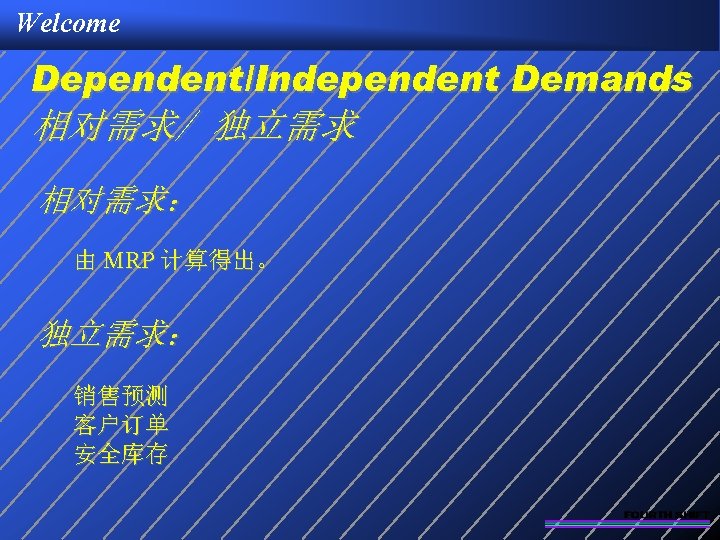Welcome Forecast/ Cust. Order Demands 销售预测/ 客户订单 Forecast Customer Order 近期 远期 长期