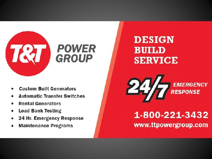MANUFACTURING CAPABILITIES • T&T POWER GROUP’S STANDARD MODELS: 10 KW – 600 KW Diesel Gensets 30 KW – 400 KW Natural Gas Gensets Custom Packages to Suit ALL Requirements