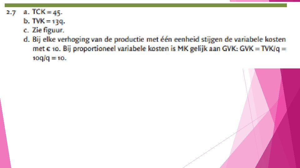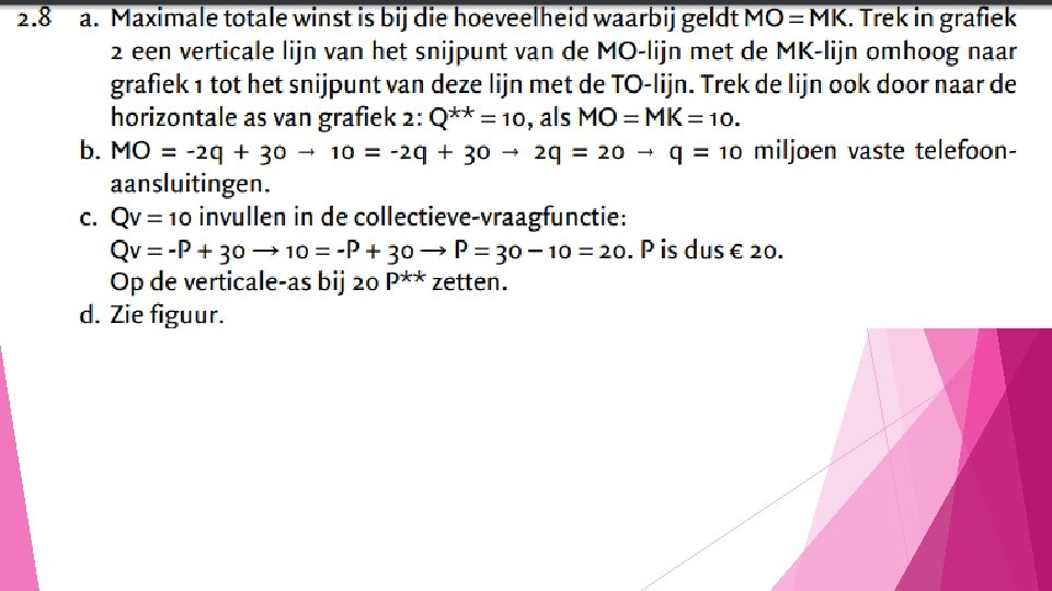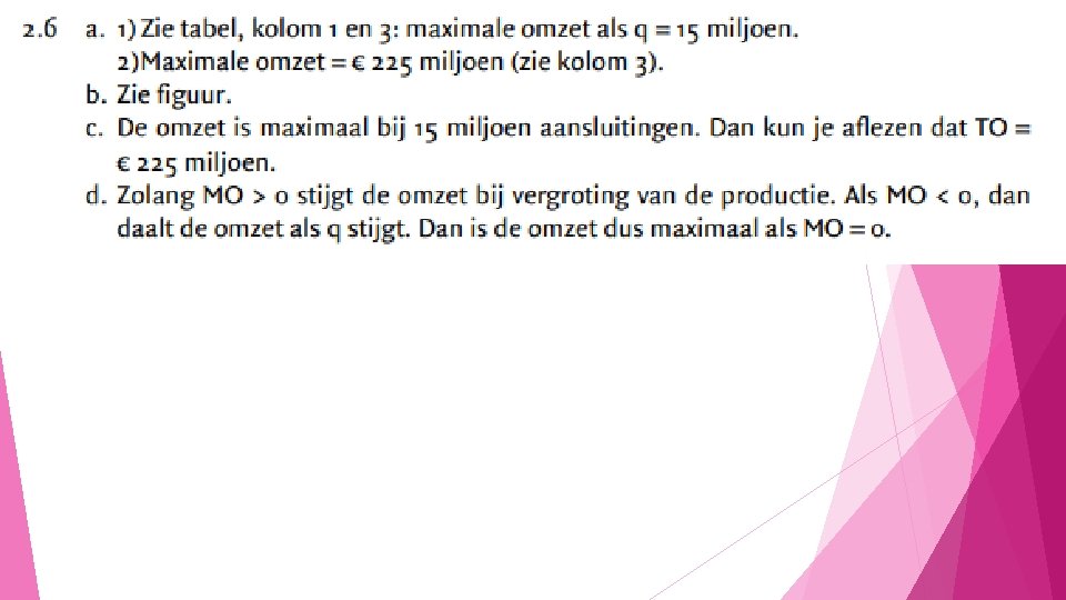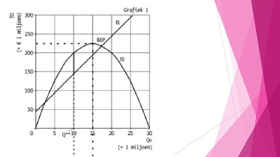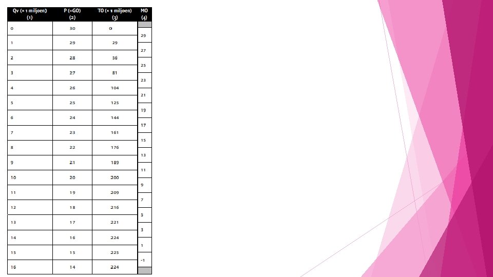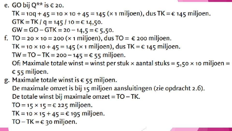 Als we de opbrengst en de kosten weten kunnen we winst berekenen! Voor maximale winst geldt MO = MK. Dan weten we altijd alleen de Q!!!!! Daarmee gaan we opbrengst en kosten berekenen en daarmee de winst.