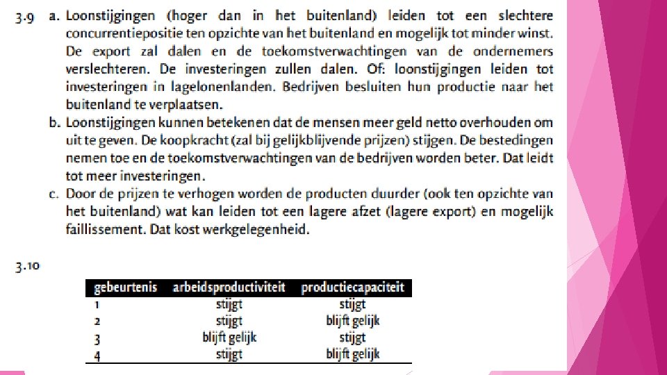 Kapitaal. Gaat hier om vaste kapitaalgoederen: machines/fabrieken. Wanneer neemt de productiecapaciteit toe? Wanneer er meer/betere kapitaalgoederen beschikbaar zijn. Daar is wel geld voor nodig! Gezinnen moet dus een gedeelte sparen, zodat banken geld bezitten wat ze kunnen uitlenen/investeren in bedrijven. Ook investeren bedrijven een gedeelte van hun winst. Hiervoor is het dus belangrijk dat bedrijven winst maken niet te hoge kosten niet te hoge loonstijging.