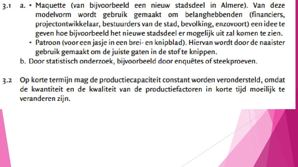 1. 4 de aanbodzijde Een crisis kan ook ontstaan de aanbodzijde van de economie: Problemen met productieproces of productiekosten. De werkloosheid die dan ontstaat noemen we : structurele werkloosheid. Productiecapaciteit wordt bepaald door de kwaliteit en kwantiteit van productiefactoren: arbeid, kapitaal, natuur, ondernemerschap. De verhouding tussen de productiefactoren kan verschillen. (In dienstensectoren relatief weinig natuur nodig). De productiefactor waarvan we het minste hebben bepaald de productiecapaciteit, dit wordt ook wel de knelpuntfactor genoemd. Structurele werkloosheid = kwantitatief (te weinig plekken) of kwalitatief (mismatch tussen arbeid aangeboden/gevraagd)