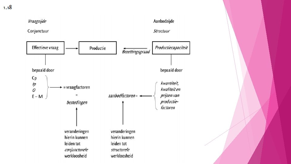 Conjunctuur en structuur. De economie wordt bepaald door de conjunctuur en door de structuur van een land. De conjunctuur = vraagzijde van de economie = effectieve vraag. Betekenis: de totale bestedingen in een land = effectieve vraag. De structuur = aanbodzijde van de economie = productiecapaciteit. Hoeveel kunnen we maximaal produceren in een land = productiecapaciteit.