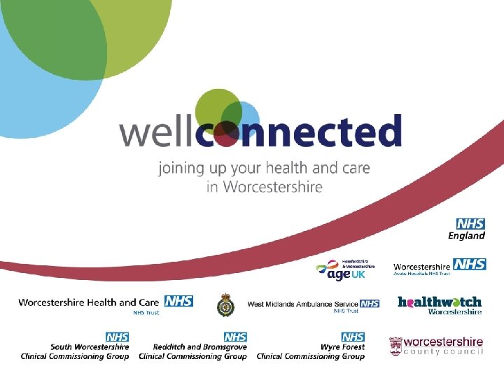 Well Connected: History • Arose out of Acute Services Review • Formal collaboration between WCC, all local NHS organisations, Healthwatch and voluntary sector • Builds on long history of successful partnership • Strong general practice • Successful application for National Integration Pioneer status • Clear agreement that patients / service users and the public come first, not organisational interests