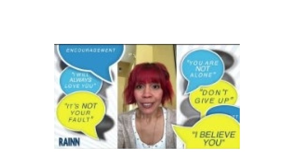 Resources • Websites: • https: //www. nsvrc. org/saam • https: //www. rainn. org/resources • You. Tube: • Consent: https: //www. youtube. com/watch ? v=f. Go. WLWS 4 -k. U • Survivors Share: https: //www. youtube. com/watch ? v=3 OQQFDk 7 l 3 A