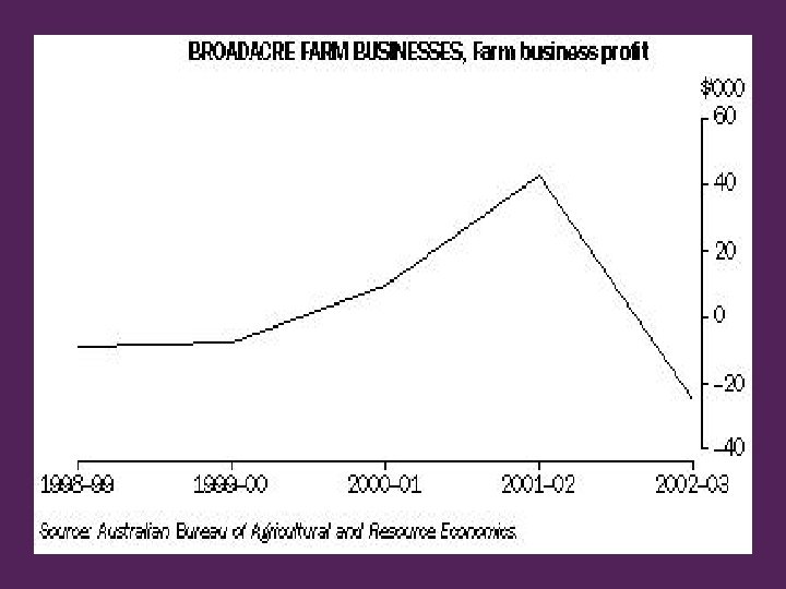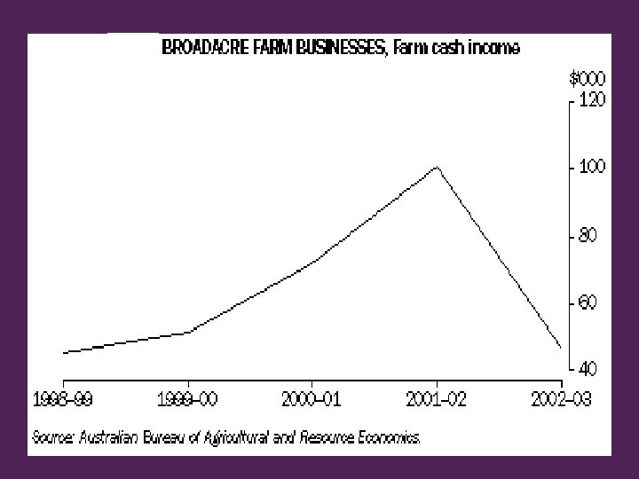 Trends in Rural Australia • Farming communities downsizing • Family farms corporatising • Urban encroachment • Ageing farm population • Succession issues : youth issues • Women as farm biz managers • Slow uptake of technology • Slow uptake new knowledge