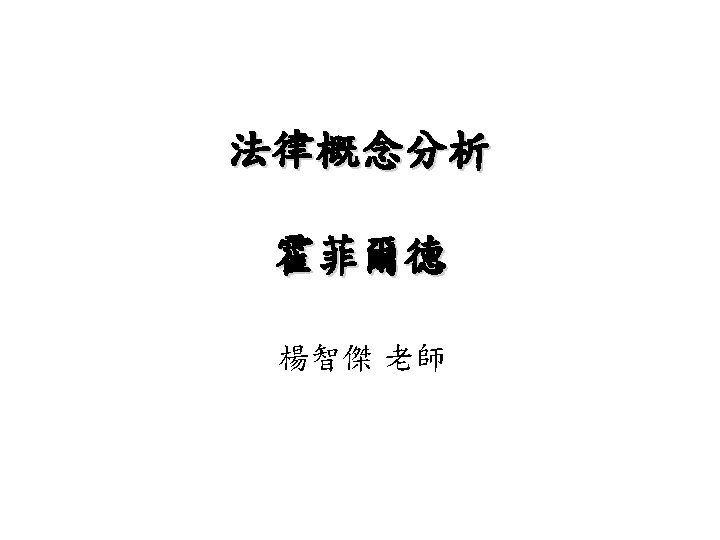 八個概念 • Jural Opposites: – 1. Right/No-Right 2. Privilege/Duty – 3. Power/Disability 4. Immunity/Liability • Jural Corelatives: – 1. Right/Duty 2. Privilege/No-Right – 3. Power/Liability 4. Immunity/Disability