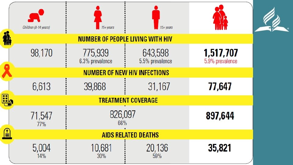 CHURCHES INVOLVED IN HIV/AIDS ACTIVITIES ENTITY CHURCHES 1 ST QUARTER 2018 COMPANIES 1 ST QUARTER 2018 MEMBERSHIP 1 ST QUARTER 2018 THOSE INVOLVED IN HIV PROGRAMS CNC 360 171 62786 6 GRVC 540 488 65783 0 KLC 722 177 97563 20 NWKC 473 543 44681 261 RC 876 323 168107 6 TOTAL 2961 1701 438920 293 LVF source: WKUC statistical data. 1 st quarter, 2018