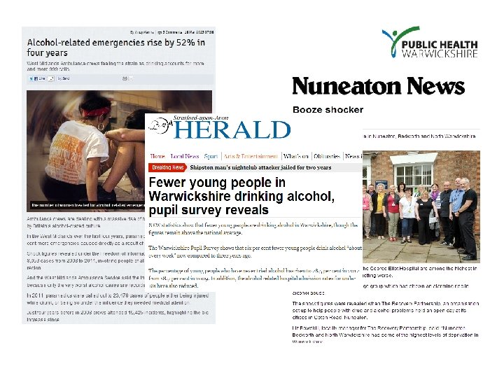 Admissions to hospital Warwickshire: Alcohol related admissions – males and females (per 100, 000 population) 2, 000 Nuneaton and Bedworth Rugby Warwick 1, 500 North Warwickshire Stratford-on-Avon 1, 000 2011/122 2010/111 2009/10 2008/09 2007/08 2006/07 2005/06 2004/05 2003/04 - 2002/03 500 Source: Local Alcohol Profiles for England (2012)
