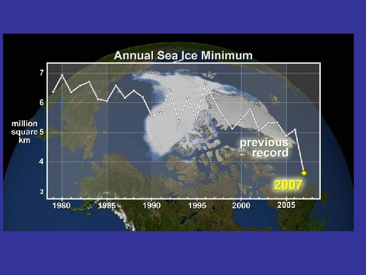 Arctic Sea Ice Extent Satellite imagery of sea ice extent in September 1979, and at a record low in September 2007. Source: NASA If sea-ice continues to contract rapidly over the next several years, Arctic land warming and permafrost thaw are likely to accelerate. David Lawrence, NCAR
