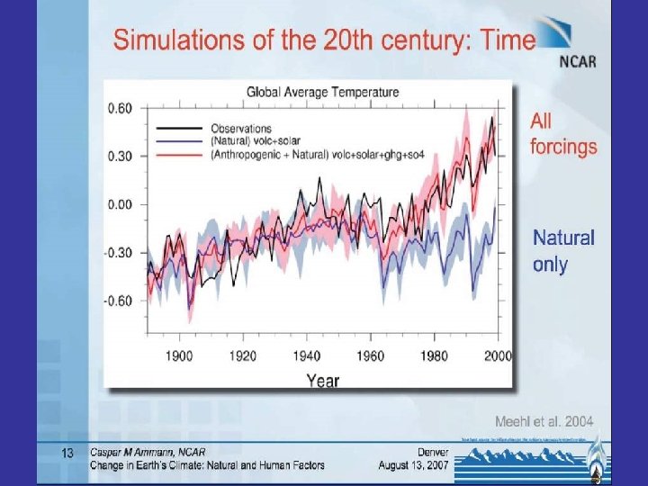 HOWEVER: THE LATEST DATA THRU 2007 SUGGESTS GREEN HOUSE GASES ARE MATCHING AND OVERTAKING TSI VARIATIONS NCAR: Caspar Amman, 2007