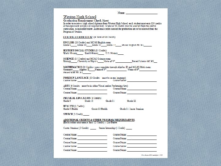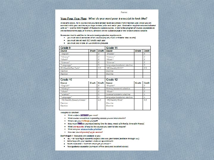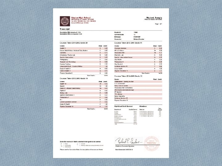 Resources • Tips for reaching your student’s counselor • Call the Guidance Office (781 -786 -5820) • Email (last name first initial @weston. org) • Don’t hesitate to contact the teacher, email is best • The Guidance website • Monthly newsletter, announcements, links to documents and other resources (such as a tutor list) • The Enrichment Center (TEC) • Infinite Campus Portal – use in moderation! • Contact the right person for your question • See the handout… the Nurse, Attendance, Athletics or Activities offices may be the best place to start.